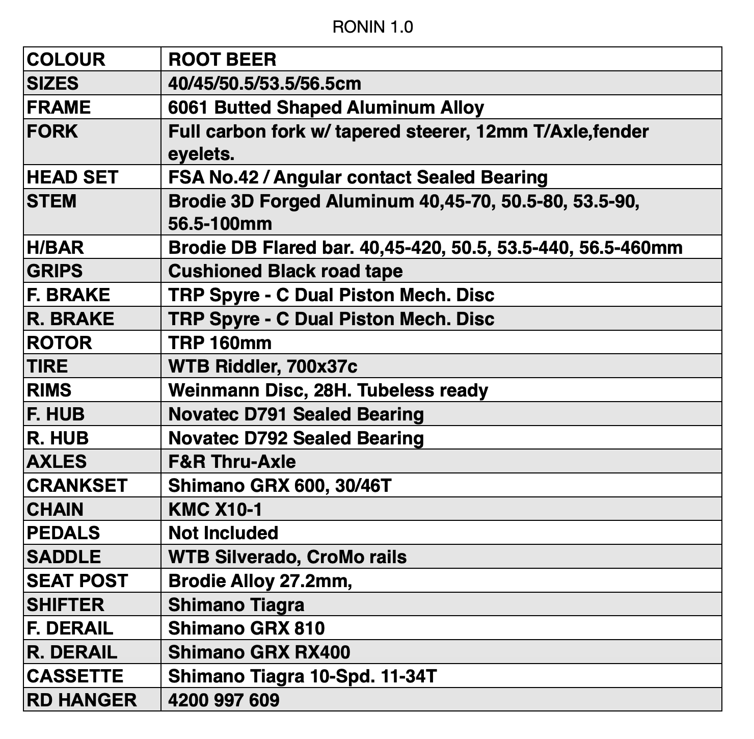 Derailleurs : Shimano GRX 810 Front, GRX RX400 10 Speed Rear
